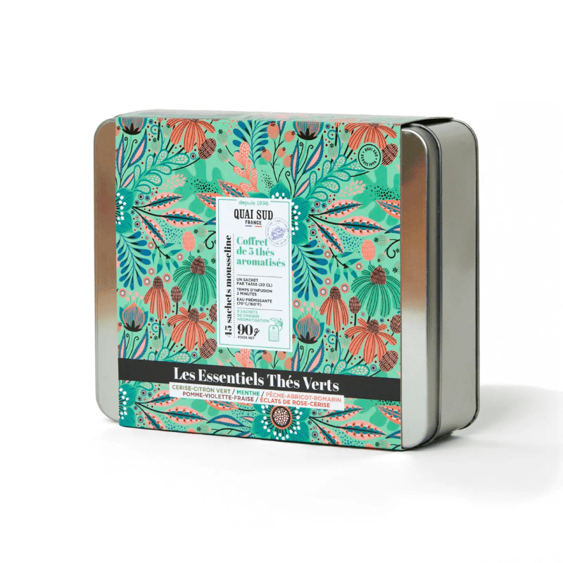 Dégustez un thé vert aromatisé parmi les 5 saveurs proposées dans ce coffret spécial.