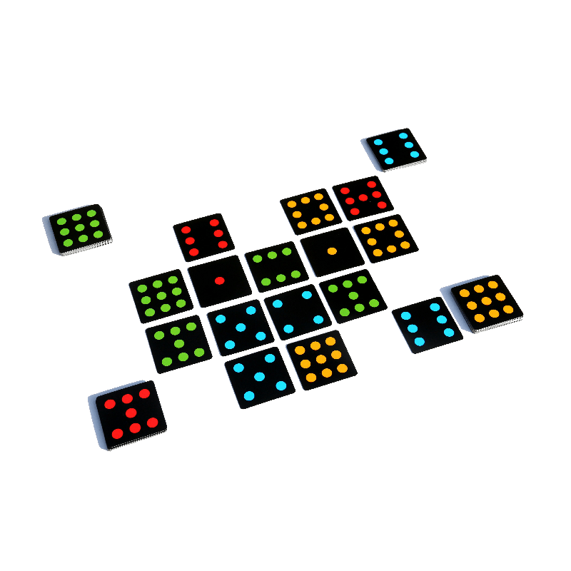 Comment jouer ? Placez vos cartes pour en avoir quatre de votre couleur en ligne, colonne ou diagonale. Posez vos cartes près des autres ou superposez-les sur celles de valeur inférieure pour bloquer vos adversaires. Soyez le premier à créer une série et remportez la partie ! Compact, simple et addictif !