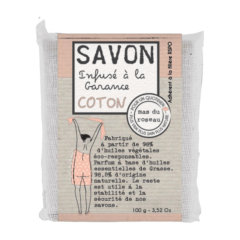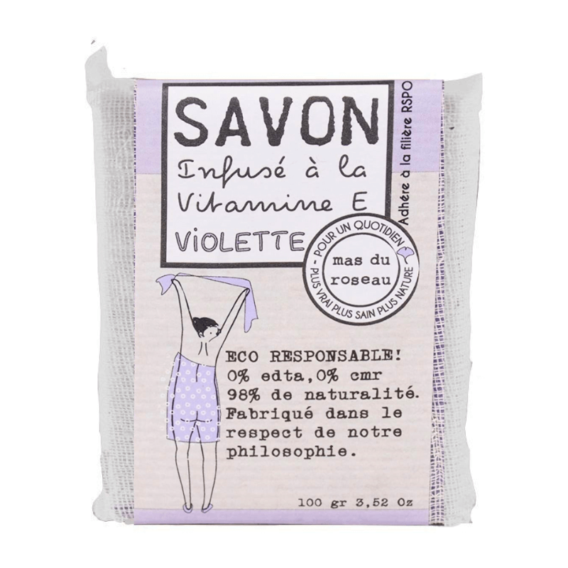 Savonnette fabriquée à partir de 98% d’huiles végétales pour le corps, visage et mains.